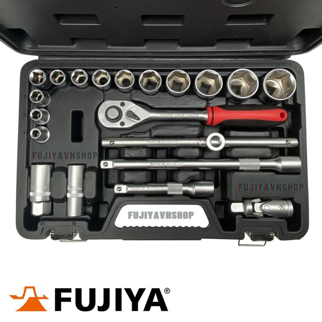 Bộ dụng cụ sửa chữa ô tô Fujiya AST4-22A - 22 món sở hữu nhiều khẩu có kích cỡ khác nhau và cần siết, cần nối tất cả đều được làm chất liệu thép không gỉ, có độ cứng cao, chịu lực tốt; các đầu khẩu được gia công rất tỉ mỉ và tinh xảo, đảm bảo không gây trầy xước bu lông trong khi sửa chữa.