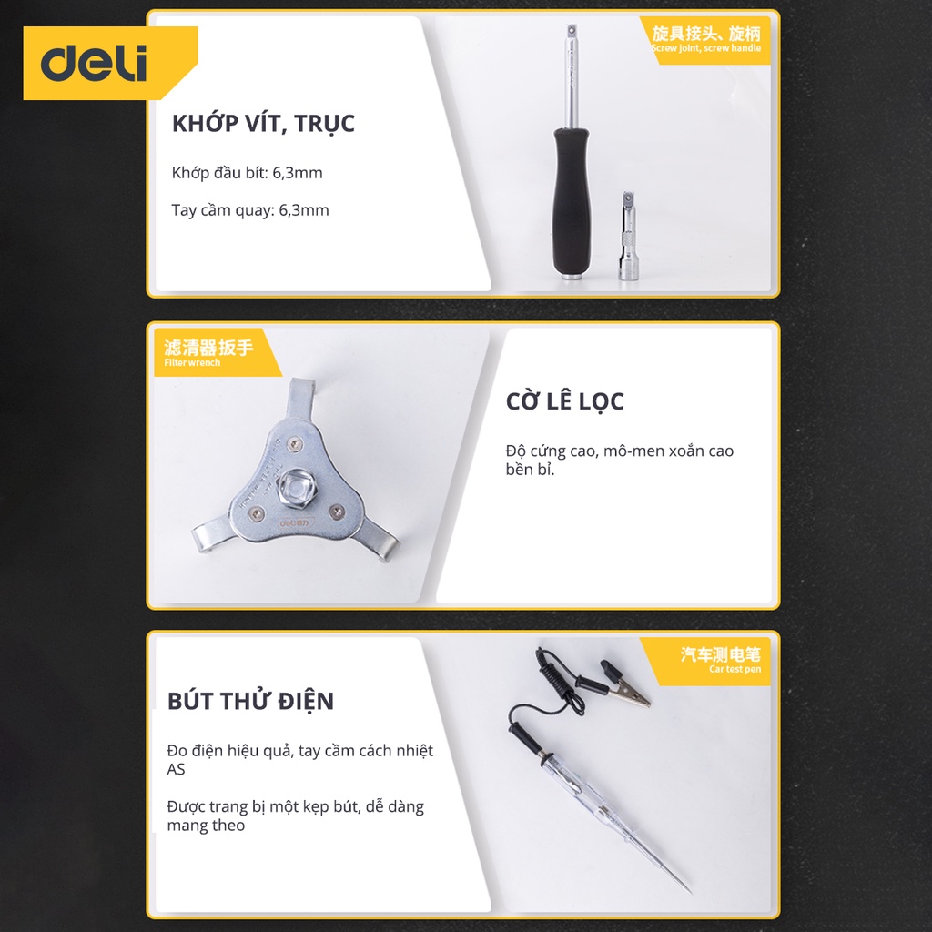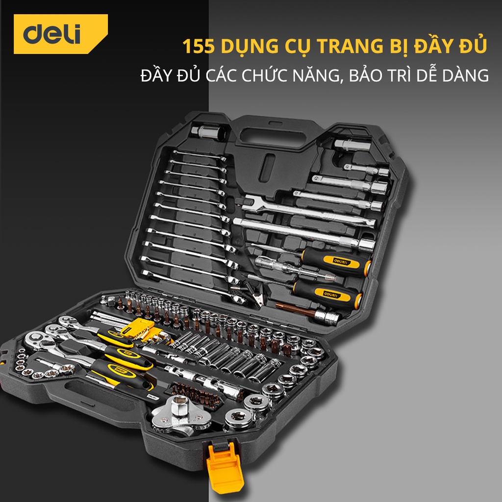 Bộ Dụng Cụ Sửa Chữa Ô Tô, Xe Máy Đa Năng Deli 123 Chi Tiết - Chất Liệu Cao Cấp Chống Mòn, Gỉ - Đầy Đủ Phụ Kiện - DL7461