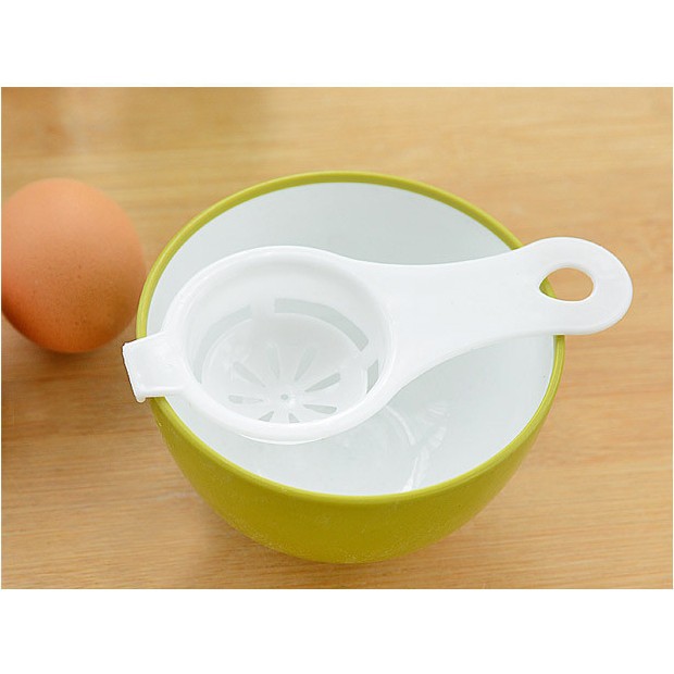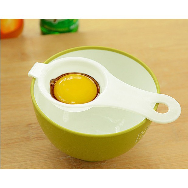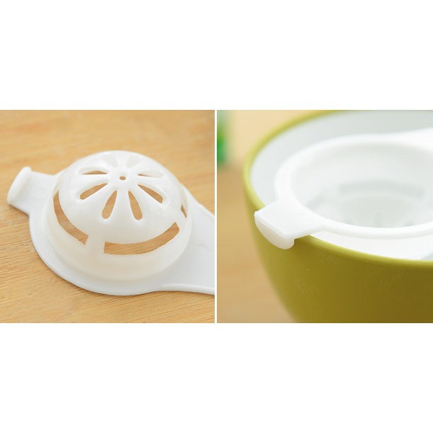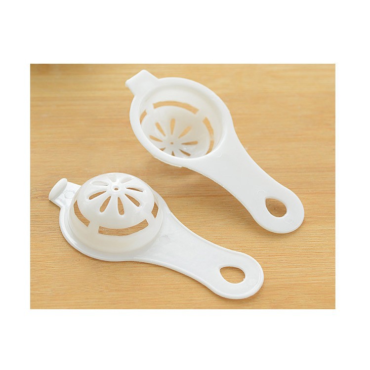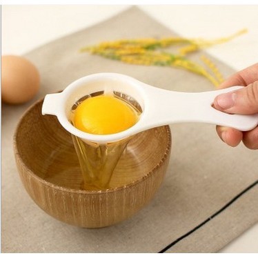 - Dụng cụ tách lòng đỏ trứng được thiết kế như một cái lưới vợt bằng nhựa. Bạn chỉ cần đập trứng vào dụng cụ tách lòng đỏ trứng này và lắc nhẹ, lòng trắng sẽ chảy xuống dưới và còn lại lòng đỏ nguyên vẹn ở trên vợt.