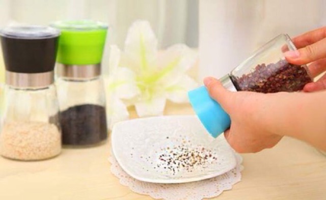 ✅ Kiểu dáng nhỏ gọn, đẹp mắt, thân bằng thủy tinh trong suốt, nắp đậy kín đáo kết hợp chức năng xay nhuyễn và rắc tiêu.