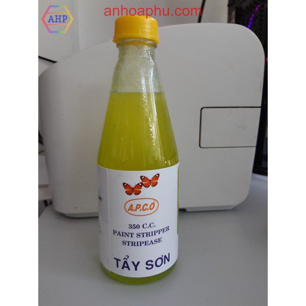Dung dịch tẩy sơn APCO, chai 350cc (có lon 1 lít, link bên dưới):- Công dụng: tẩy những chất sơn bị rộp trên mặt bê tông, gỗ và kim loại.