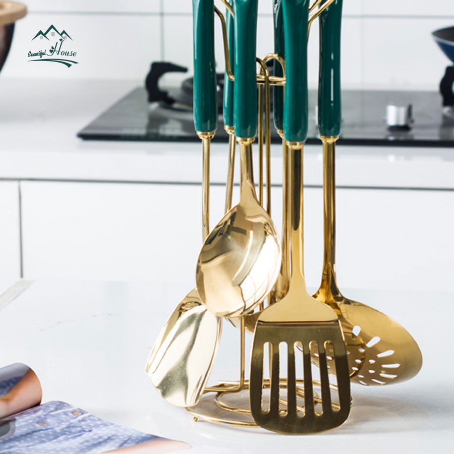 Nhà cửa & Đời sống > Bộ đồ bàn ăn > Bộ dao kéo || Bộ đồ dùng nhà bếp nấu ăn bọc sứ cẩm thạch chất liệu inox an toàn sức khỏeCòn hàng