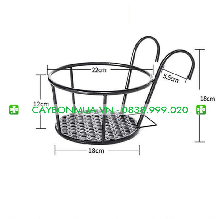 [ĐƯỢC CHỌN MÀU] Giỏ treo hoa ban công, giỏ móc sắt treo, khung thép siêu bền, sơn tĩnh điện, size lớn 22 cm