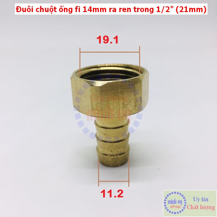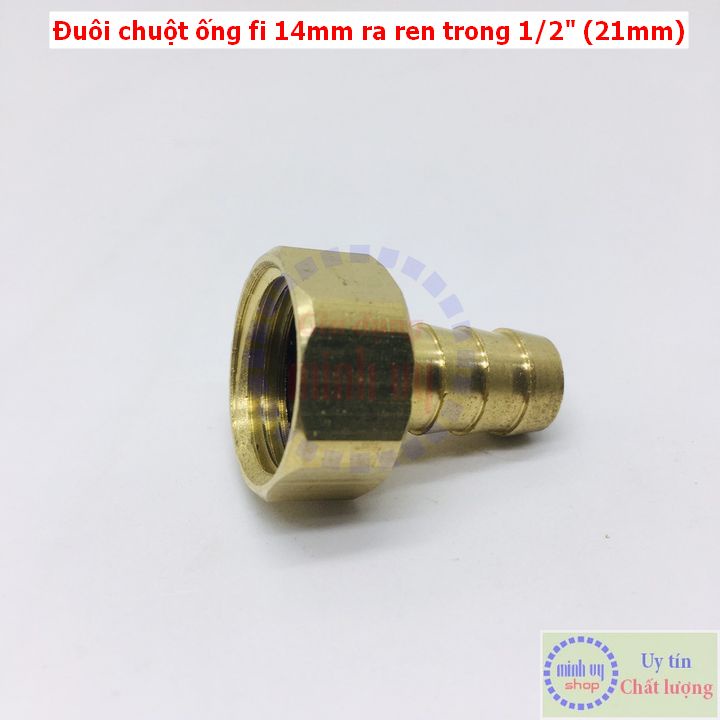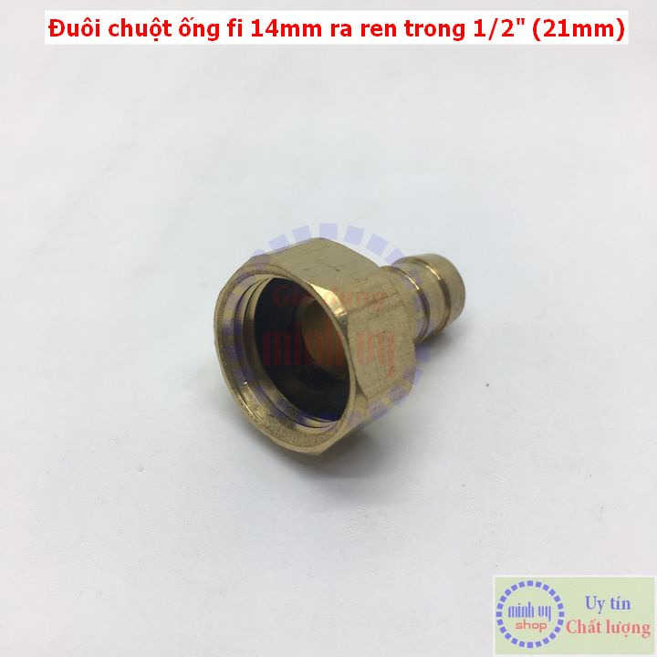 Đuôi chuột dùng để kết nối ống fi 14mm ra ren trong 21 (có người gọi là 20 hay 1/2in)Chất liệu: đồng thau