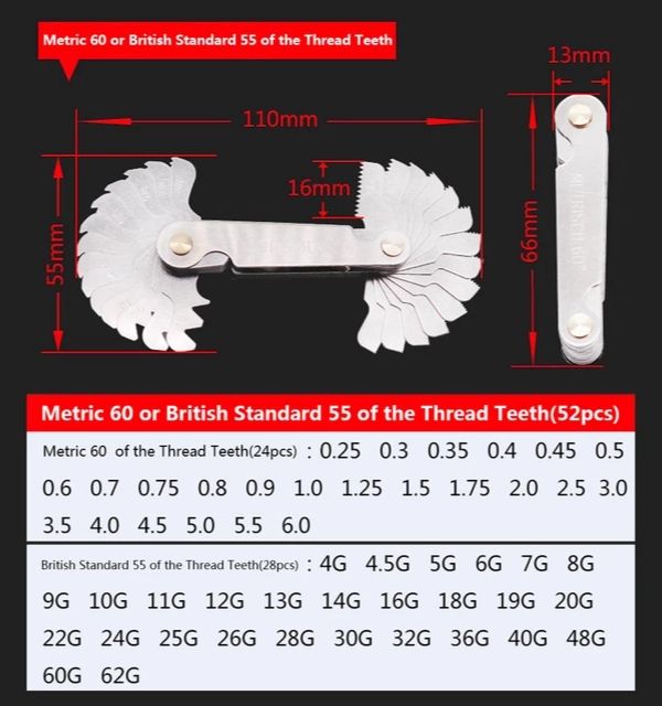 Nhà cửa & Đời sống > Dụng cụ & Thiết bị tiện ích > Dụng cụ > Dụng cụ đo lường || Dưỡng đo ren ⚡️FREESHIP⚡️ Thước đo ren 52 lá dụng cụ đo bước răng mũi taro ren ốcCòn hàng