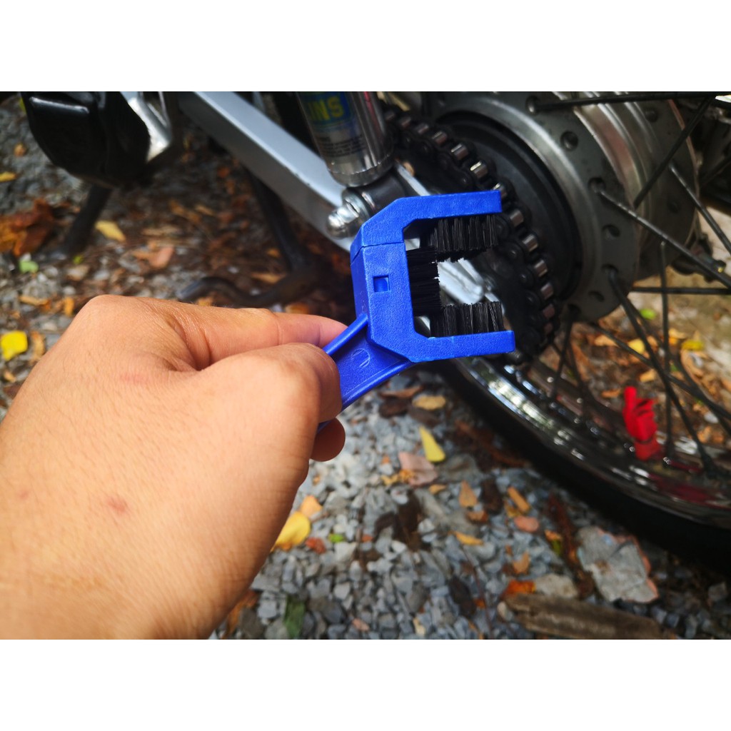 Giúp bạn loại bỏ đất cát dính trên sên xe 1 cách dễ dàng hơn, thao tác nhanh hơn với đầu bàn chà 3 chiều thông minh với tác dụng làm sạch 3 mặt sên và đầu chùi dĩa và nhông chuyên dụng.