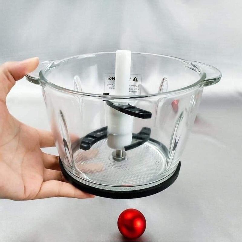 Cối xay thủy tinh có dung tích 2.4L, sức chứa tốt, lòng cối sâu, dùng để xay thịt và rau củ, đáp ứng tốt yêu cầu của người dùng.