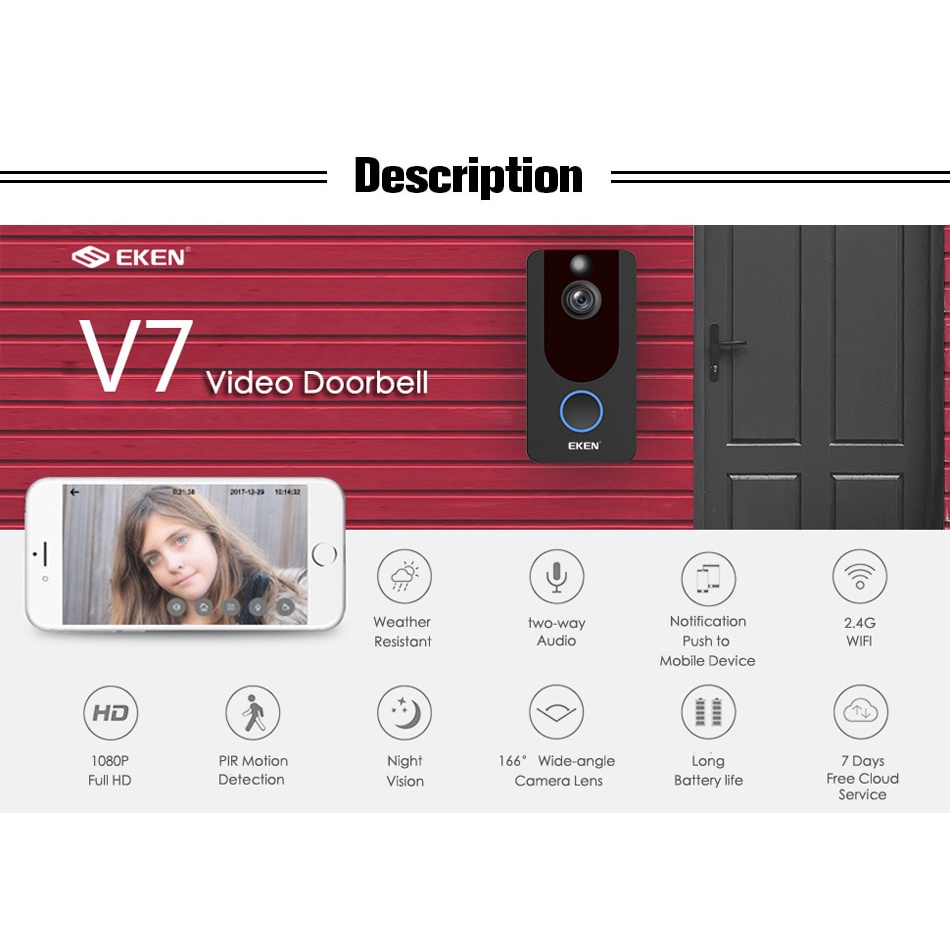 Thiết Bị Điện Gia Dụng > Thiết bị điều khiển từ xa || EKEN Camera Chuông Cửa Video WiFi Thông Minh V7 HD 1080P Chuông Cửa IP Tầm Nhìn Ban Đêm Liên Lạc Trực QuanCòn hàng