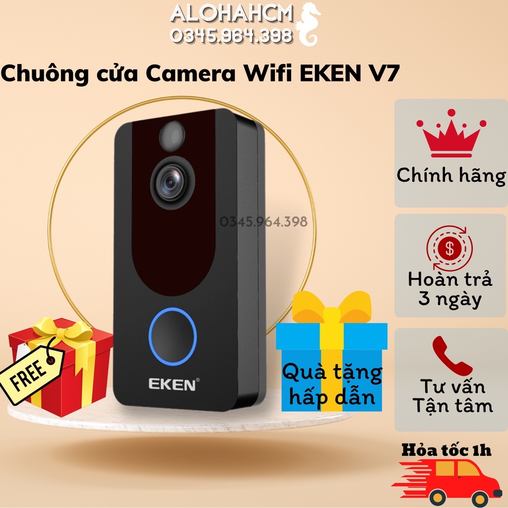 _____Aloha HCM_____HOTLINE: 0345.964.398Tên Sản Phẩm: Chuông cửa không dây thông minh có Camera wifi EKEN V7 đàm thoại 2chiều, pin siêu khủng,sử dụng2-4G,wifi,chống nước IP66
