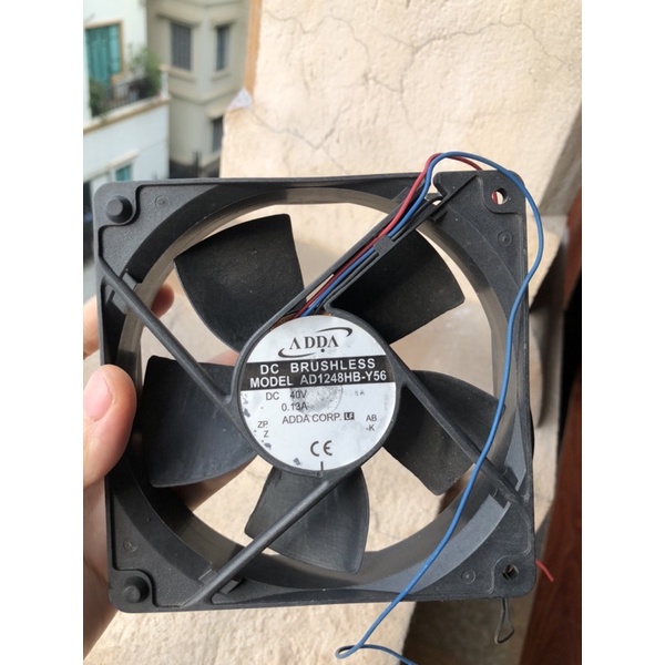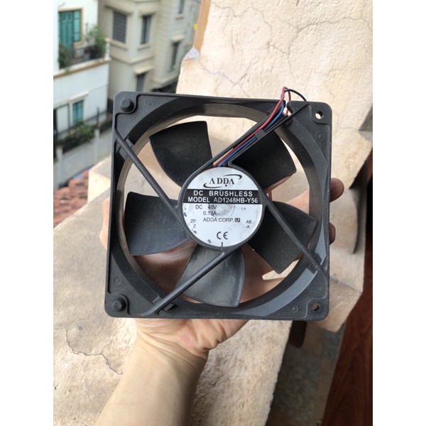 Quạt làm mát xịn 12cm. Chính hãng ADDA, thông số 12cmx12cmx2,5cmSử dụng điện 40v để làm mát, tất nhiên các điện thế dưới 40v như 12v hoặc 24v đều quay tốt nhưng yếu hơn. Bạn nào sử dụng về lắp tản nhiệt hoặc làm mát cho các thiết bị điện tử tin học rất tiên lợi.