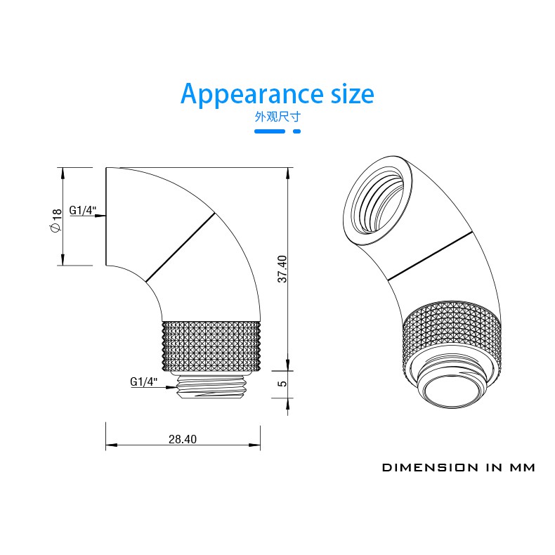 Fit snake tản nhiệt nước fit Z barrowch fbswt902Bộ chuyển đổi quay 2 chiều Barrowch G1 / 4 90 ° Snake