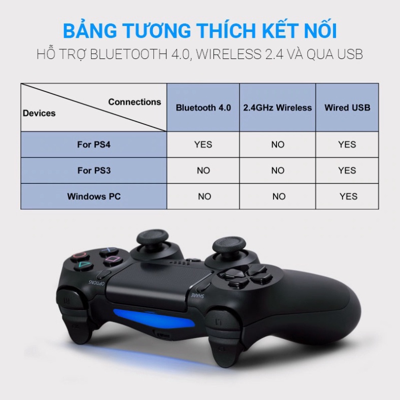 - Dùng thay thế cho các tay cầm bị hư của Playstaiton 4 Phím bấm mềm và êm, có đèn led báo hiệu khi sạc pin.