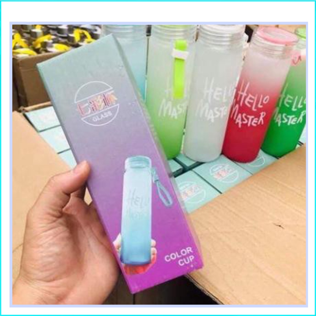 [Free Ship] Bình đựng nước thủy tinh Hello Master 450ml nhiều màu