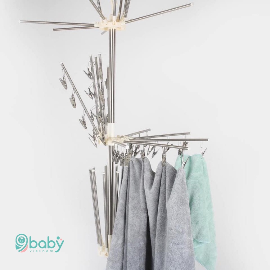 Giới thiệu FREE SHIP !!! Cây phơi đồ đa năng inox loại 56 kẹp 9BABY