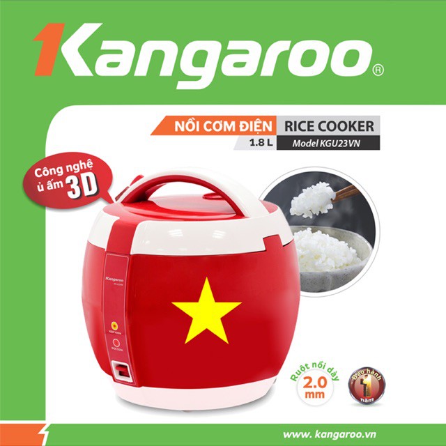 💥Nồi cơm điện Kangaroo KGU23VN là một thiết kế độc đáo và lạ mắt, lấy ý tưởng từ lá cờ đỏ sao vàng Việt Nam để sản xuất nên.💥Với màu sắc nổi bật, chất liệu cao cấp, chống dính 2 lớp, công nghệ nấu và ủ hiện đại sẽ mang đến cho gia đình bạn những bữa cơm ngon mỗi ngày.