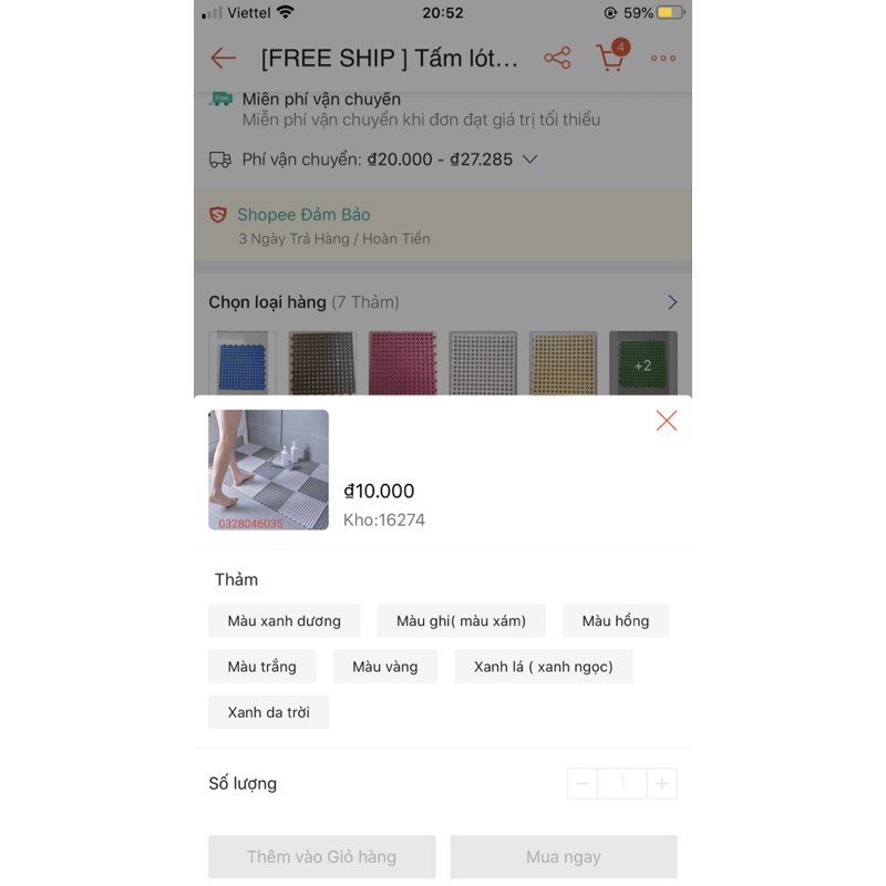 Giới thiệu [FREE SHIP] Tấm lót sàn,thảm nhựa lỗ kháng khuẩn,chống trơn,trượt kt30*30 cm sạch sẽ,thoáng mát,êm chân,an toàn cho trẻ