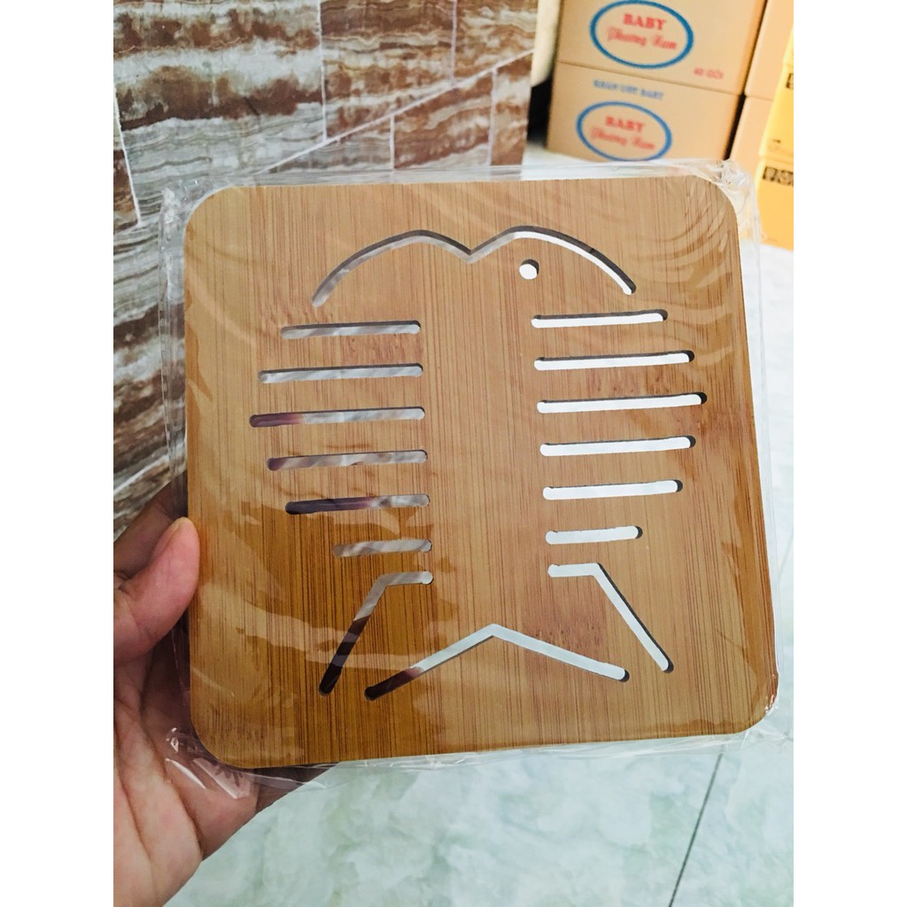 Sản phẩm dùng để lót xoong, nồi, chảo, bát đĩa, cốc chén … được làm bằng gỗ giúp cách nhiệt giữa xoong, nồi và mặt bàn hay tủ đựng thức ăn hiệu quả.