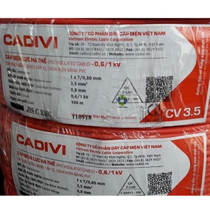 1. DÂY ĐIỆN 3.5 CADIVI 3.5MM2 co dây lõi đồng thực hiện nhiệm vụ dẫn điện, có chất liệu tốt, độ mềm dẻo ổn định, đảm bảo hoạt động dây dẫn hoạt động ổn định và việc truyền tải thuận lợi.
