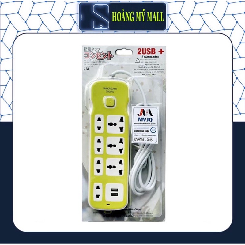 [Freeship 99K] Ổ Cắm Điện 2USB NAKAGAMI (Dây 2M)