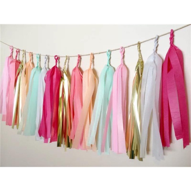 •Set gồm 5 sợi dây tua rua một màu trang trí bàn tiệc, làm back ground hoặc làm đuôi buộc bóng jumbo ... cho các bữa tiệc sinh nhật, đám cưới, pảties ....