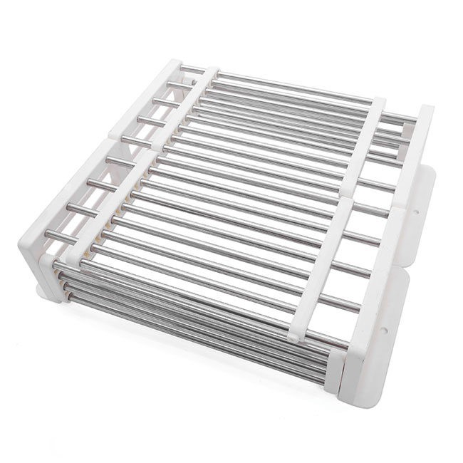 - Có thể gia giảm kích thước để vừa với buồng rửa chén hoặc kéo gọn để cất đi khi không dùng đến.