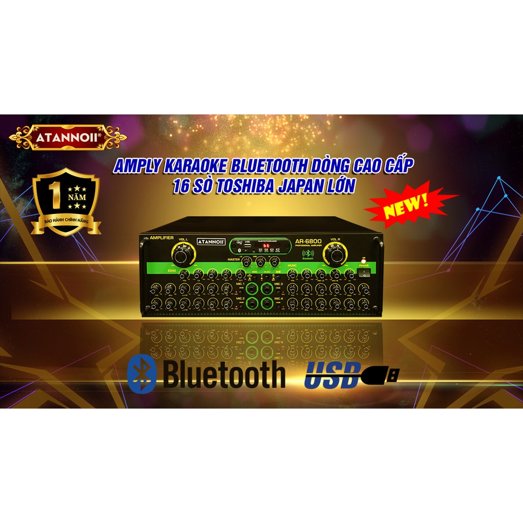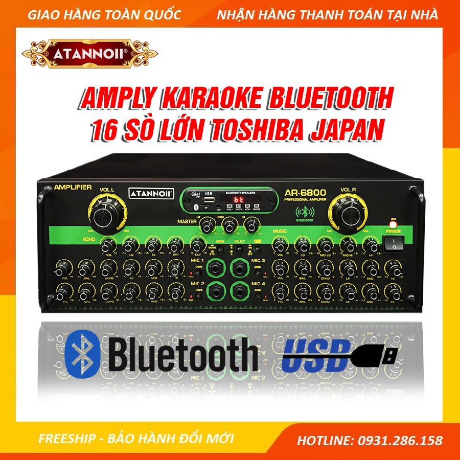 Amply Bluetooth 16 sò lớn Toshiba.Japan - Ampli Karaoke Gia Đình ATANNOII AR-6800 - Nút chỉnh nhôm sang trọng(Vui lòng liên hệ Shop để được hỗ trợ phí vận chuyển)