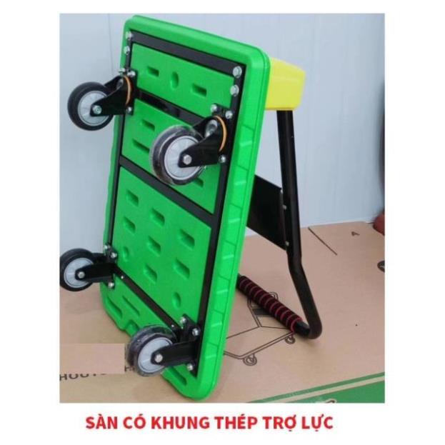 - Xe đẩy hàng với mặt sàn tương đối rộng, bạn có thể để đc hàng hóa nhiều hơn, chất cao hơn mà không sợ rơi nếu dùng dây để chằng hàng vào với khung xe. Xe thích hợp dùng trong thang máy ở các tòa chung cư cao tầng, kho bãi, văn phòng...