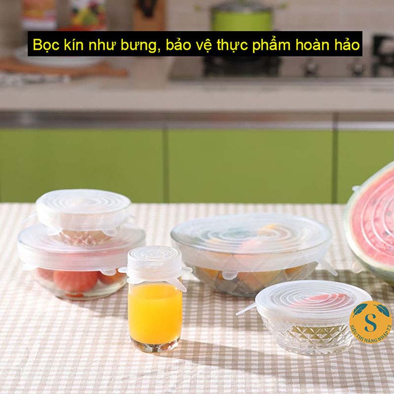 Gia Dụng Mai Chi :Bộ 6 nắp đậy silicon bọc thức ăn tiện lợi dễ vệ sinh.