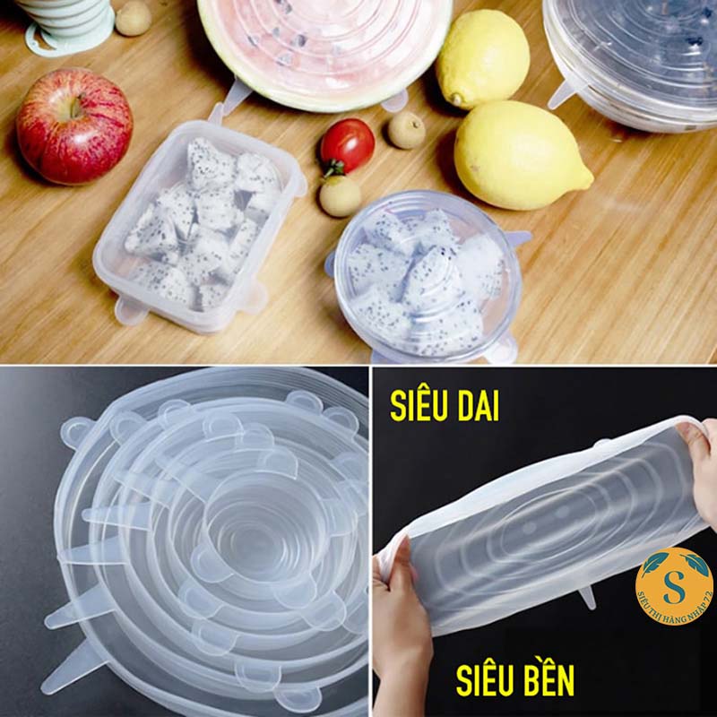 Giới thiệu [FREESHIP️] Bộ 6 nắp đậy silicon bọc thức ăn tiện lợi dễ vệ sinh -Gia Dụng Mai Chi