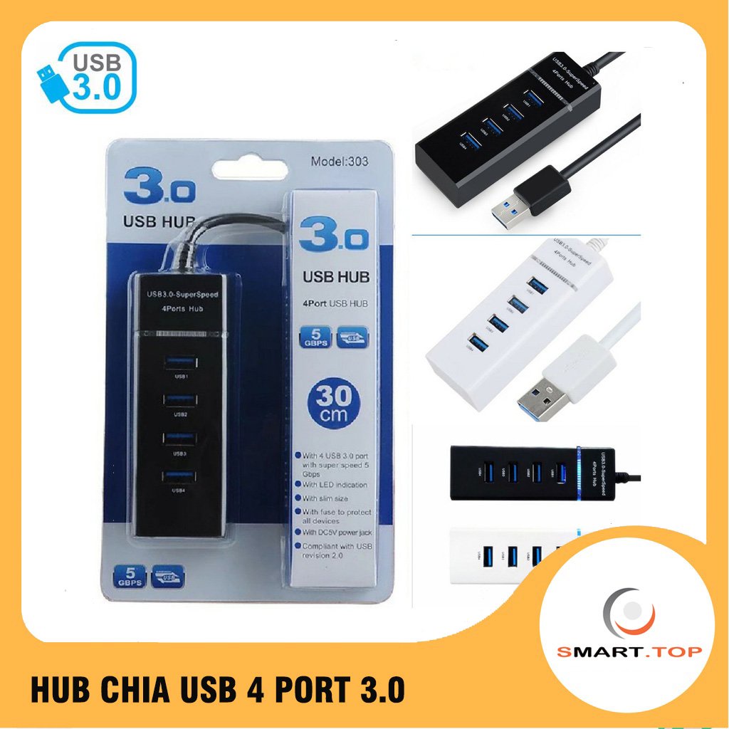 Máy tính & Laptop > Phụ Kiện Máy Tính > Bộ chia cổng USB & Đọc thẻ nhớ || ⚡️Freeship⚡️Bộ chia 4 Cổng USB 3.0 Dây Dài 30cm - HUB USB 3.0 4 PortCòn hàng