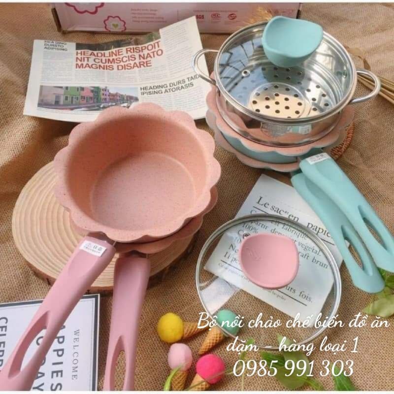 🌺Bộ nồi quánh, chảo chất lượng, chuyên dùng nấu cháo, nấu bột, làm bánh, hấp rau củ, hấp bánh... cho bé yêu