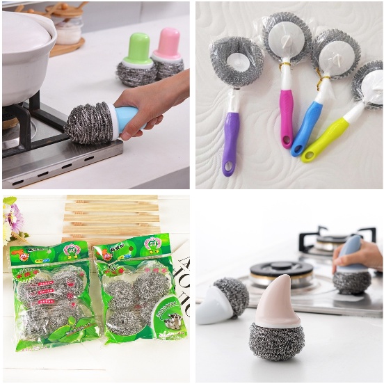Được làm từ những sợi thép nhỏ, mềm, giúp xóa nhanh vết bẩn, vệt đen trên dụng cụ nhà bếp bằng kim loại: nồi gang, sắt, inox, bếp điện…