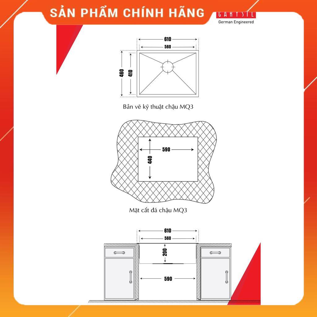 Giới thiệu (FreeShip) Chậu Rửa Bát CARYSIL Inox304 - Nhập Khẩu 100% Ấn Độ - MQ3 - 610x440mm