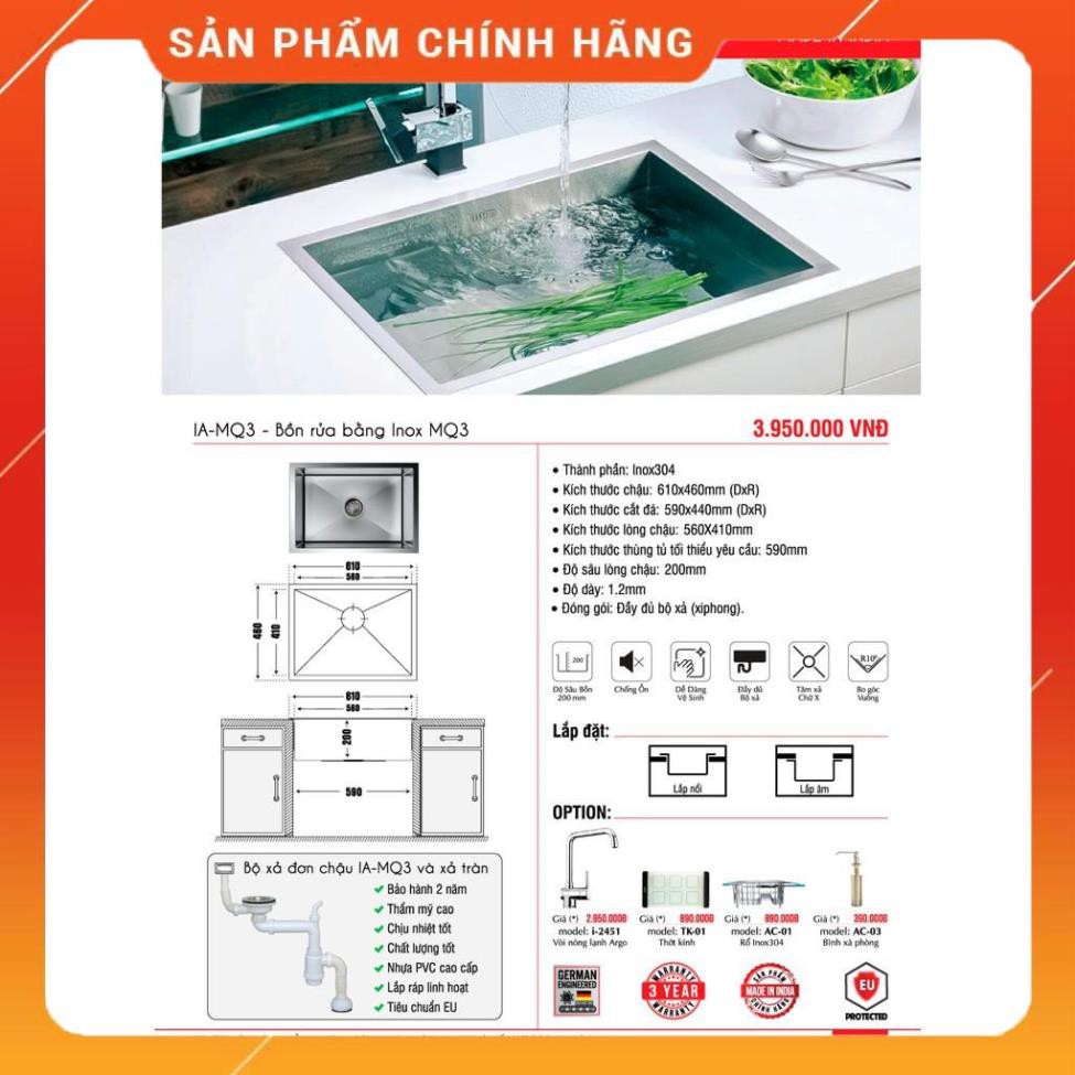 Liên hệ zalo 0987166432 để được tư vấn và giao hàng miễn phí.khách hàng ở nội thành sài gòn ln đặt nowship hoặc grap để được giao hàng nhanh nhất.xin cảm ơnCARYSIL - Chậu Rửa Bát Bằng Inox304 - Nhập Khẩu 100% Ấn Độ - Chậu Đơn MQ3 - 610x440mm