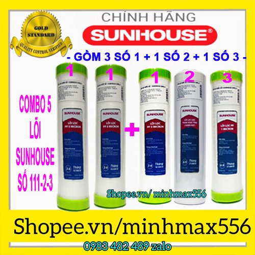 Giới thiệu [FREESHIP] COMBO 5 LÕI LỌC NƯỚC SUNHOUSE | GỒM 03 SỐ 1 - 01 SỐ 2 - 01 SỐ 3 DÙNG CHO 9 THÁNG