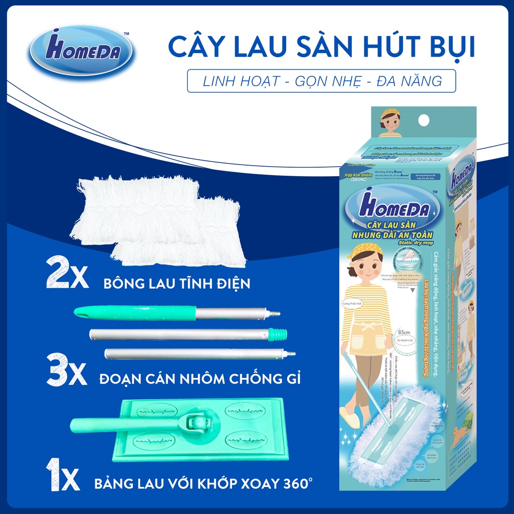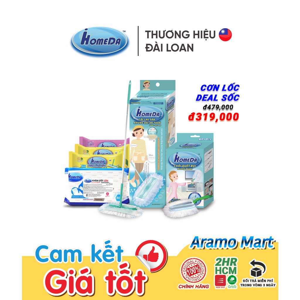Nhà cửa & Đời sống > Dụng cụ chăm sóc nhà cửa > Khăn vệ sinh || [FREESHIP] Combo Lau Dọn Tĩnh Điện iHomeDa 1 Cây Lau + 1 Chổi + 5 Gói Khăn Ướt Cao Cấp + 1 Gói Miếng Rửa Chén*AramoMart*Còn hàng
