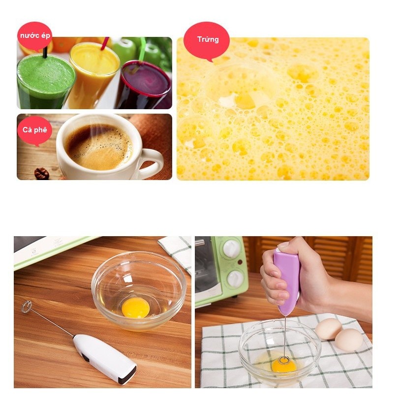 Thay vì dùng tay đánh trứng, sữa, café ... hãy để máy đánh trứng cầm tay mini làm thay bạn. Với sản phẩm này, việc đánh trứng sẽ được thực hiện nhanh chóng, nhẹ nhàng hơn và những món bánh sẽ thơm ngon, xốp mềm hơn. Ngoài ra, sản phẩm có thể dùng hiệu quả cho các nguyên liệu khác nhau như sữa, café, kem tươi, đồ ăn cho trẻ…Thông tin sản phẩm: