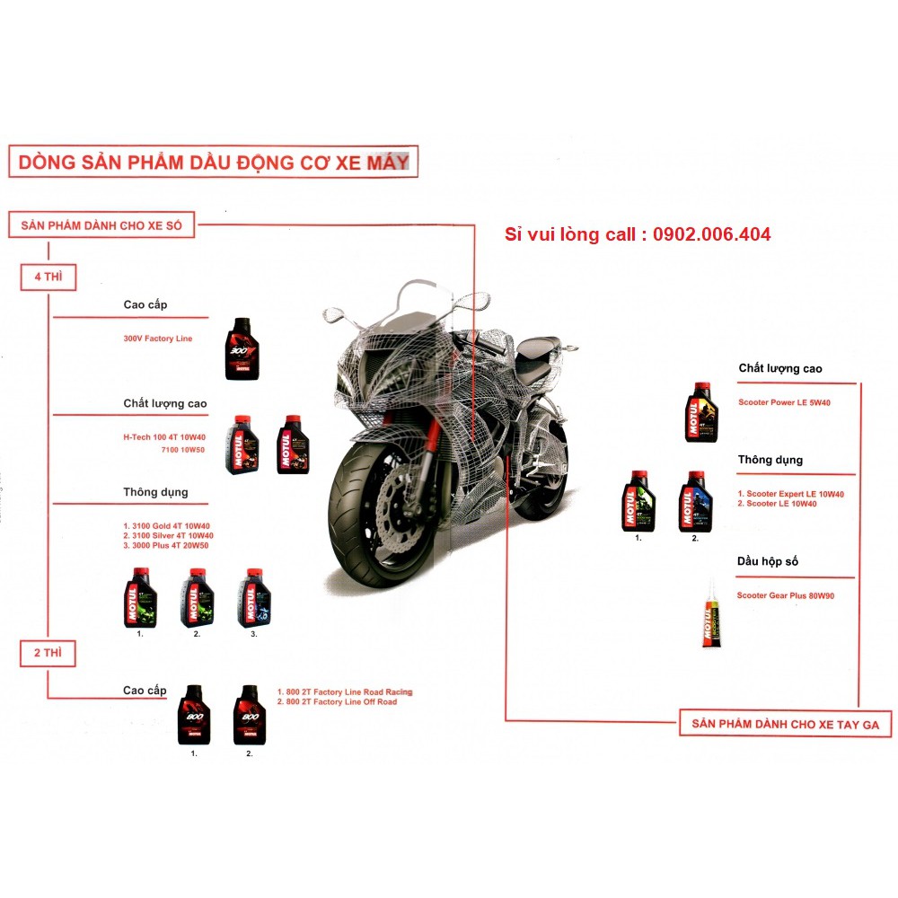 Chú ý: Motul Scooter Power LE 5W40 không thích hợp cho động cơ xe máy số 4 thì.