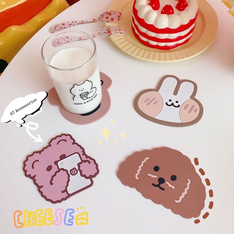 Nhà cửa & Đời sống > Bộ đồ bàn ăn > Khay, tấm lót bàn ăn || [ FREESHIP] Đế lót ly silicon chống trượt, cách nhiệt hoạt tiết dễ thươngCòn hàng