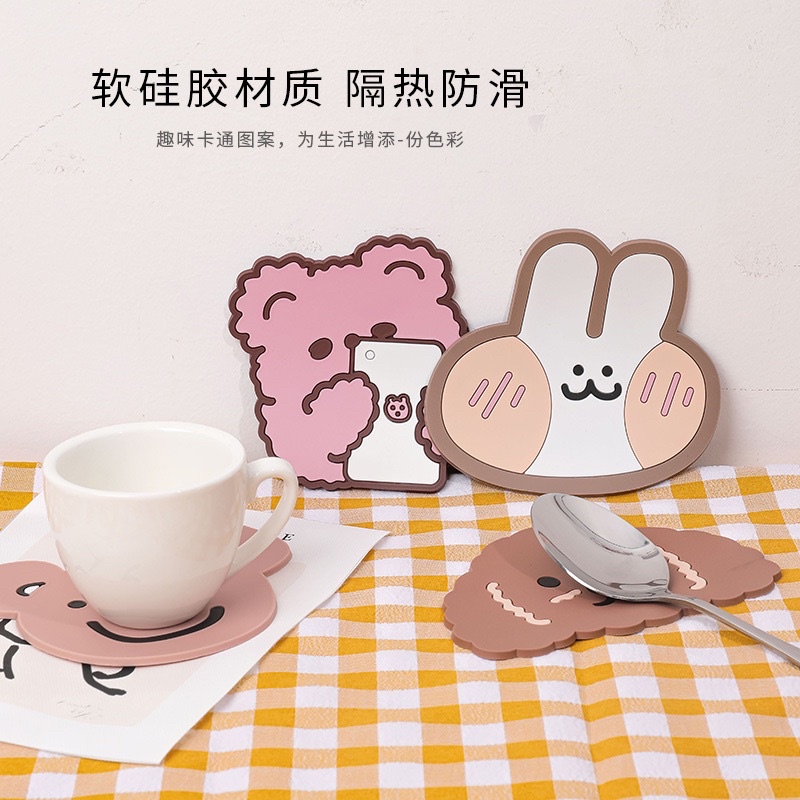 Tấm lót bàn lót bằng silicon, rất thiết thực, lấy một cốc nước sôi hoặc đồ uống nóng bằng tấm lót này sẽ không bị nóng Các mẫu hoạt hình rất dễ thương và thiết thực