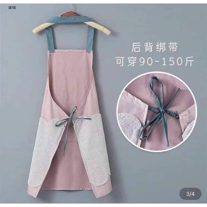 + Tạp dề được làm từ chất liệu polyester dày dặn, chống bám bẩn, chống nước