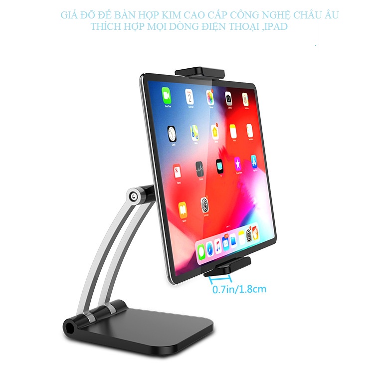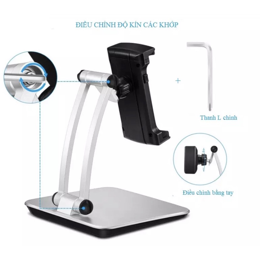 - GIÁ ĐỠ IPAD có thể để trên bàn làm việc hoặc vị trí phù hợp.
