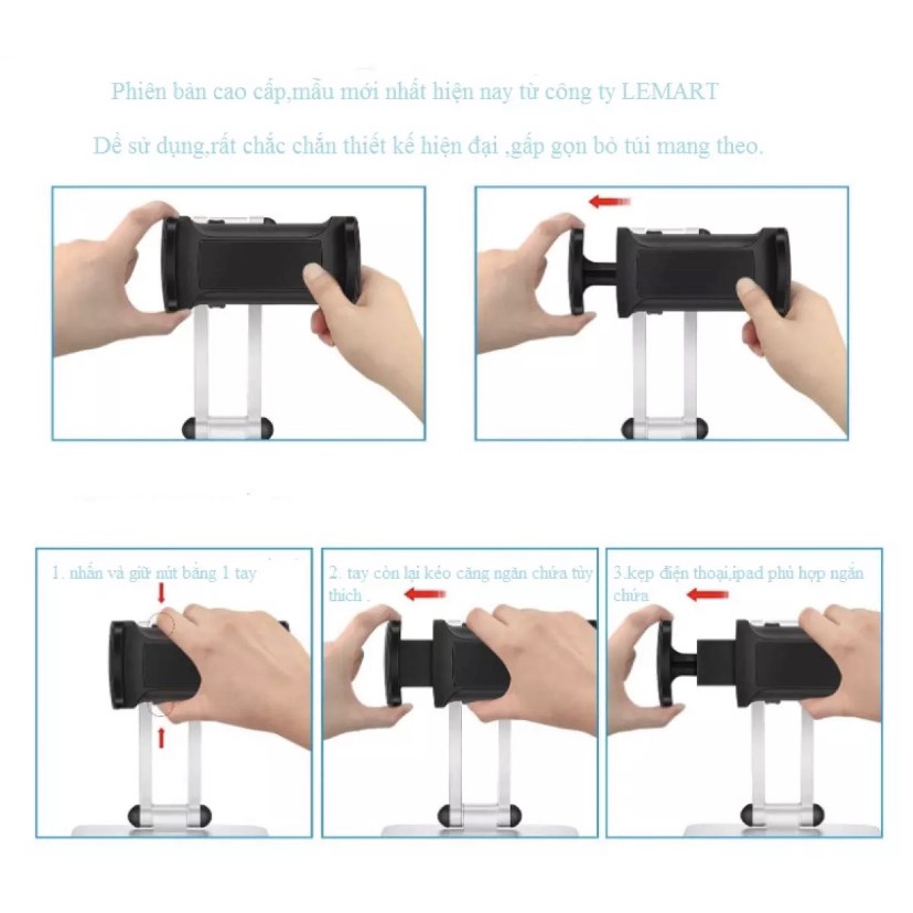 - Sản phẩm phù hợp với hầu hết các dòng điện thoại, máy tính bảng trên thị trường hiện tại. Vô cùng tiện dụng giúp bạn đọc sách online, lướt web, xem tin tức, xem phim, nghe nhạc, chơi game đều rất dễ dàng, không phải lo việc cằm nắm, mỏi tay.- Chất liệu bằng nhôm chắc chắn, các cạnh mịn, cứng cáp, nhẹ, nhỏ gọn, di động. Đế giữ máy bằng nhựa ABS có cao du chống trầy và chống rơi vỡ.
