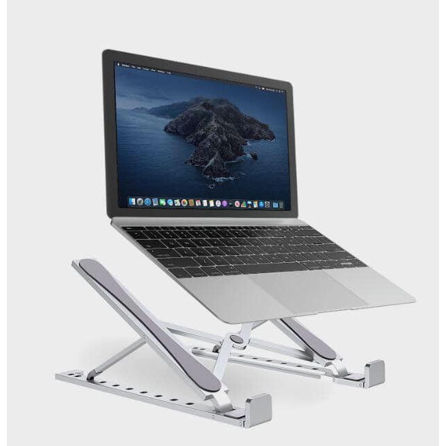 - Đế nhôm được tản nhiệt MacBook, Laptop thiết kế có thể điều chỉnh độ nghiêng với 9 góc khác nhau giúp người dùng giảm đau trên vai, cổ và đặc biệt là vì tầm nhìn vừa tầm nên giúp bạn tránh được tình trạng mỏi mắt.