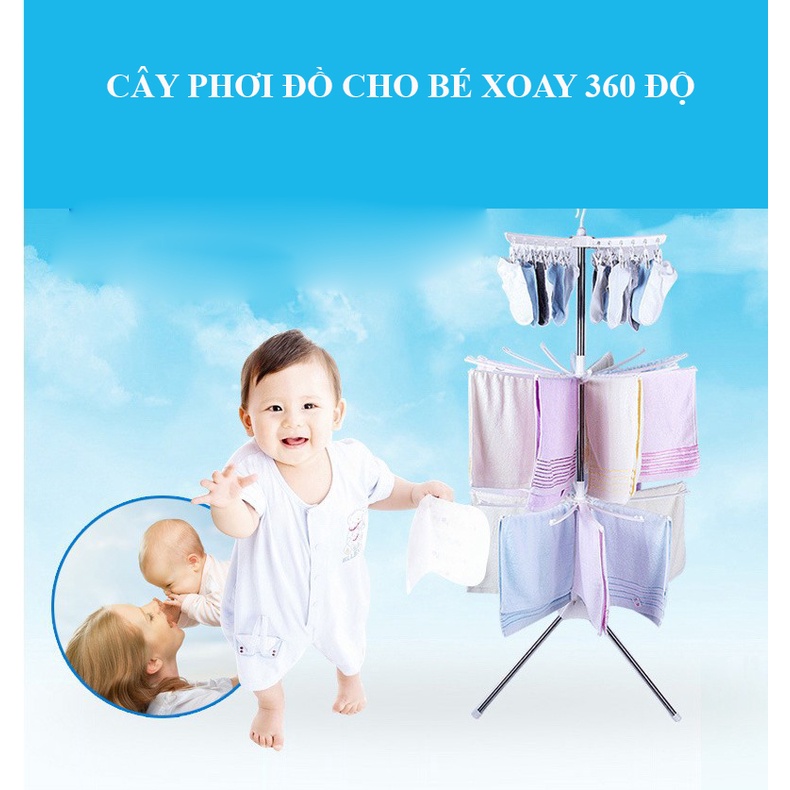 [FREESHIP❤️] GIÁ PHƠI CÂY PHƠI ĐỒ CHO BÉ XOAY 360 ĐỘ 56 KẸP