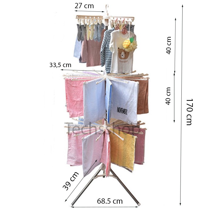 [FREESHIP❤️] GIÁ PHƠI CÂY PHƠI ĐỒ CHO BÉ XOAY 360 ĐỘ 56 KẸP
