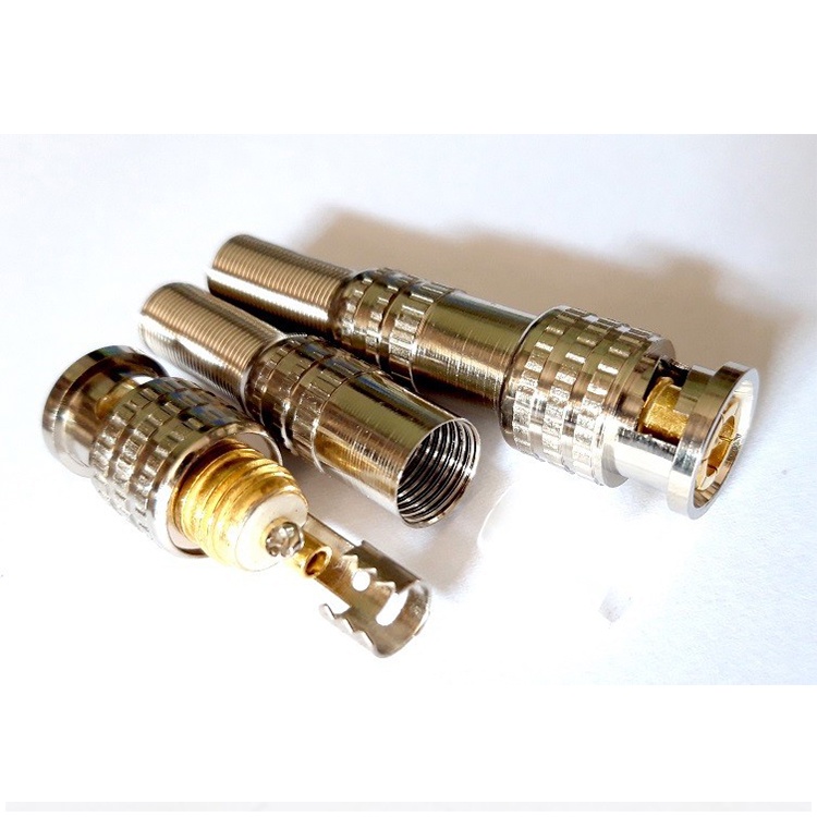 Jack cắm BNC dùng để nối dây cáp đồng trục 1 sợi với đầu ghi Camera hoặc đầu BNC của Camera. Jack BNC có 1 lỗ nhỏ để cho trục kim loại truyền tải tín hiệu của cáp đồng trục, được giữ chặt bới 1 ốc vít nhỏ giúp cho độ tiếp xúc của trụ kim loại và Jack BNC tiếp xúc tốt với nhau và được giữ chặt cố định giữa Cáp và Jack.Jack BNC có phần bóp kẹp để nối với dây tiếp mát của cáp đồng trục, vừa có chức năng giữ chặt kết nối giữa Jack và Cáp đồng trục.