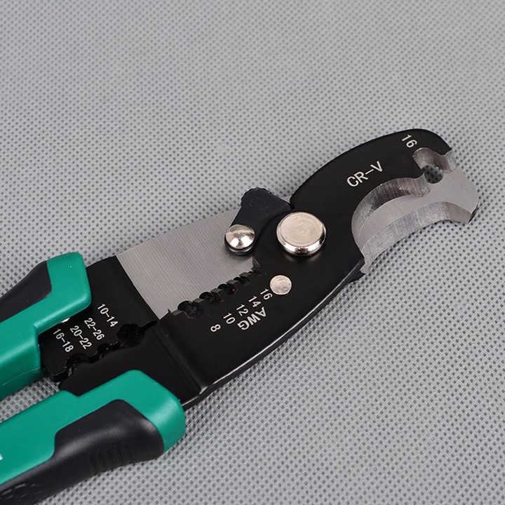 _ Tích hợp 3 chức năng tuốt dây, cắt dây, bấm cos_ Chất liệu: thép hợp kim CR-V phú lớp chống gỉ, tay cầm bọc nhựa chống trượt