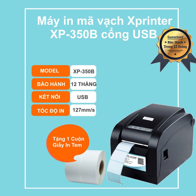 Giới thiệu [FREESHIP] Máy In Tem dán in Mã Vạch Xprinter XP - 350B Tặng 1 Cuộn Giấy In Tem Mã Vạch Chuyên Dụng in Tem Mã Vạch