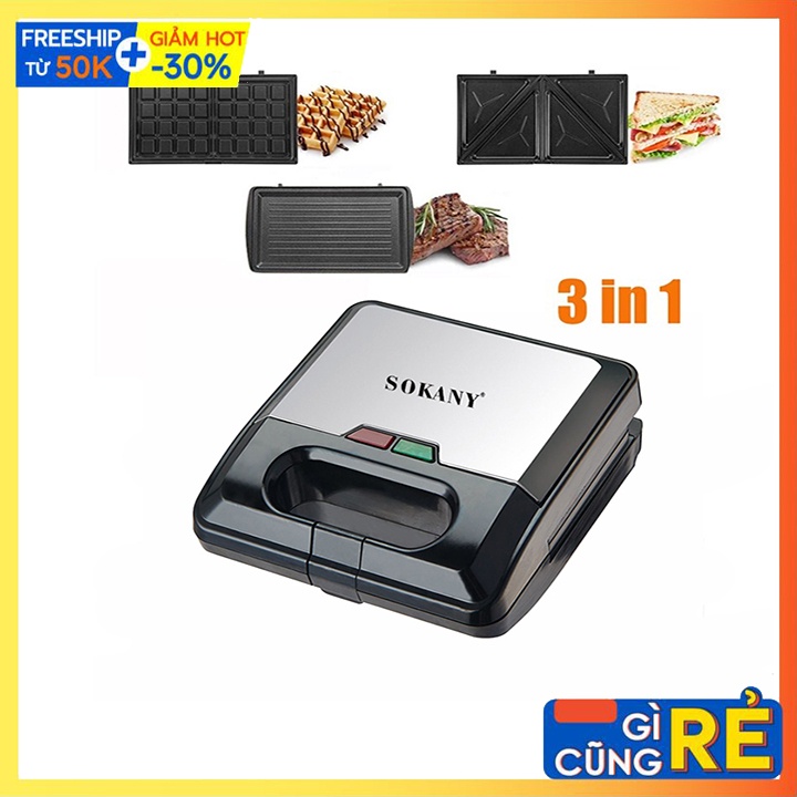 Giới thiệu ✳️FREESHIP✳️ Máy nướng bánh mỳ sandwich Sokany 3 trong 1 [ BH-12 Tháng ] - Kẹp nướng bánh mì